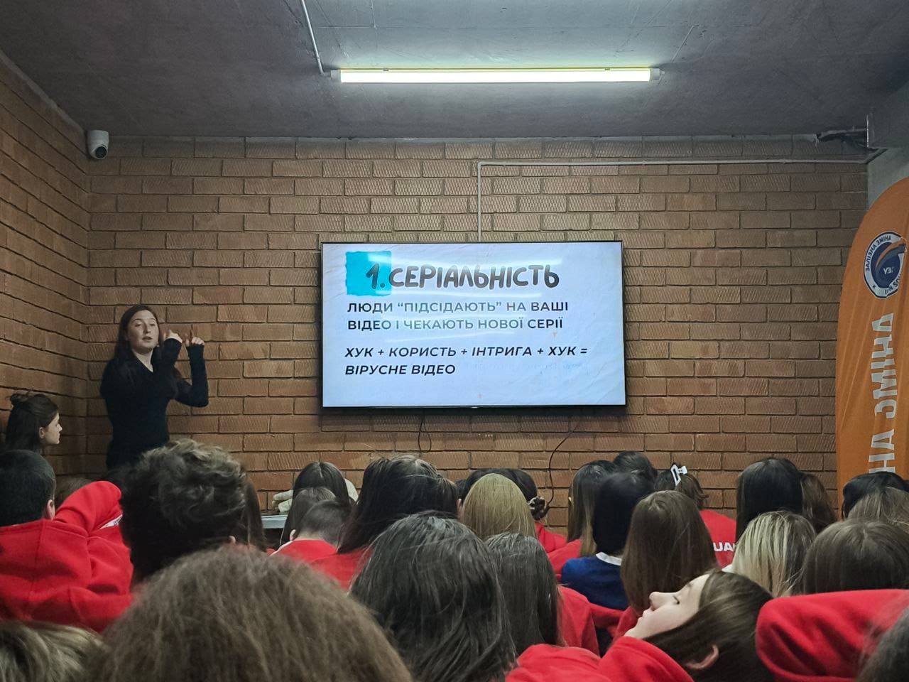 Говорили про SMM, монтаж, блогерство, алгоритми соціальних мереж, про те, що змушує людину залишатися на перегляді відео, а що – гортати далі. Лекція проходила у форматі живого діалогу: історія спікерки, пояснення ключових понять, фідбек і запитання з аудиторії.